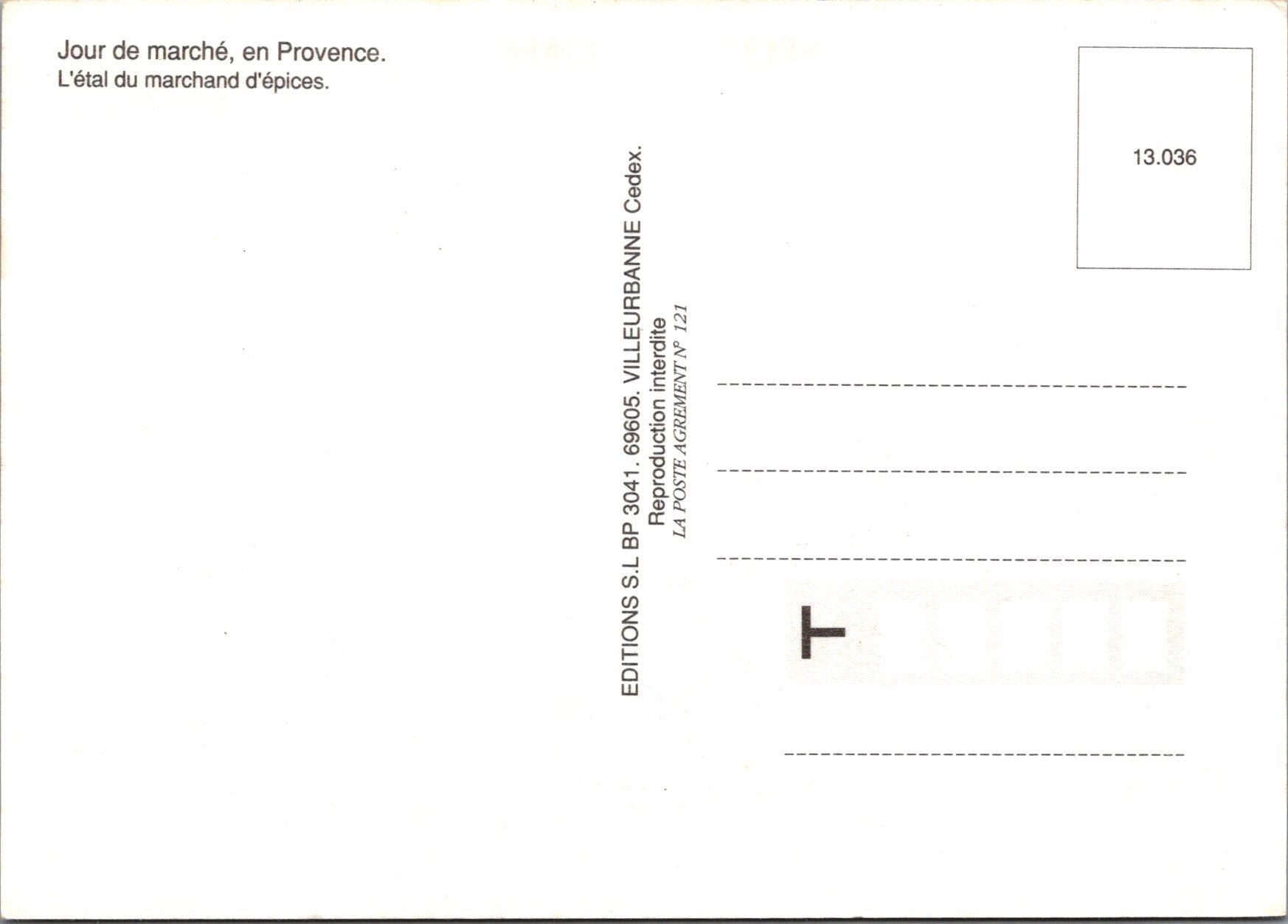 This is a Food Postcard - Jour De Marche, En Provence - Spice Market Ref.SW10055