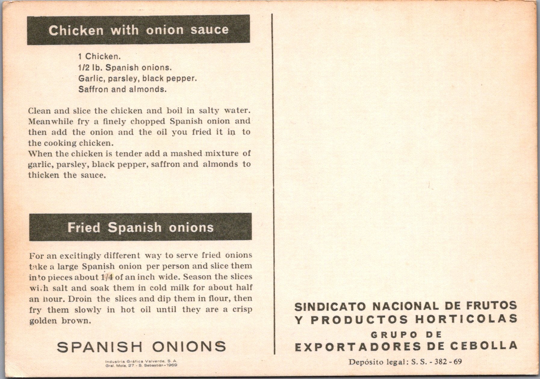 This is a Food Postcard - Spanish Onions Recipe Ref.SW9984