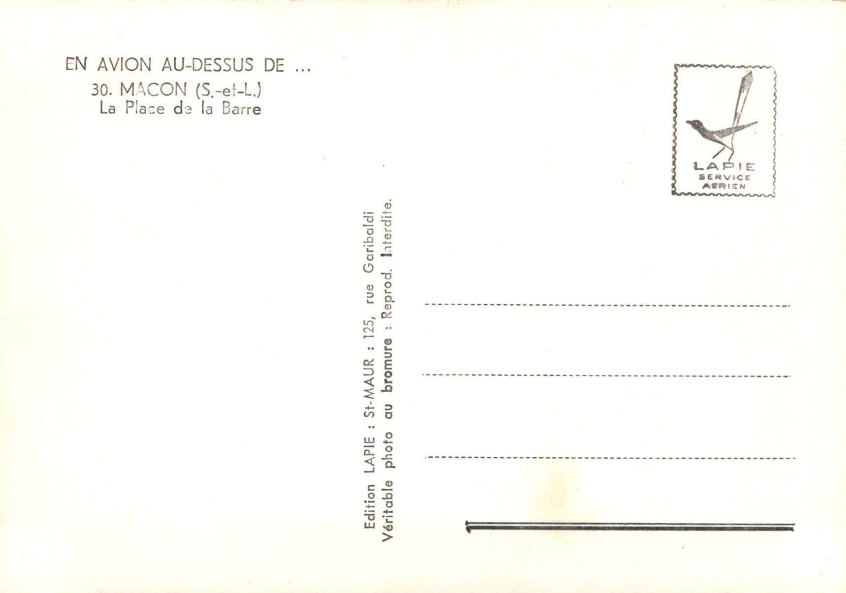France Postcard - Aerial View of Macon - La Place De La Barre SW1631