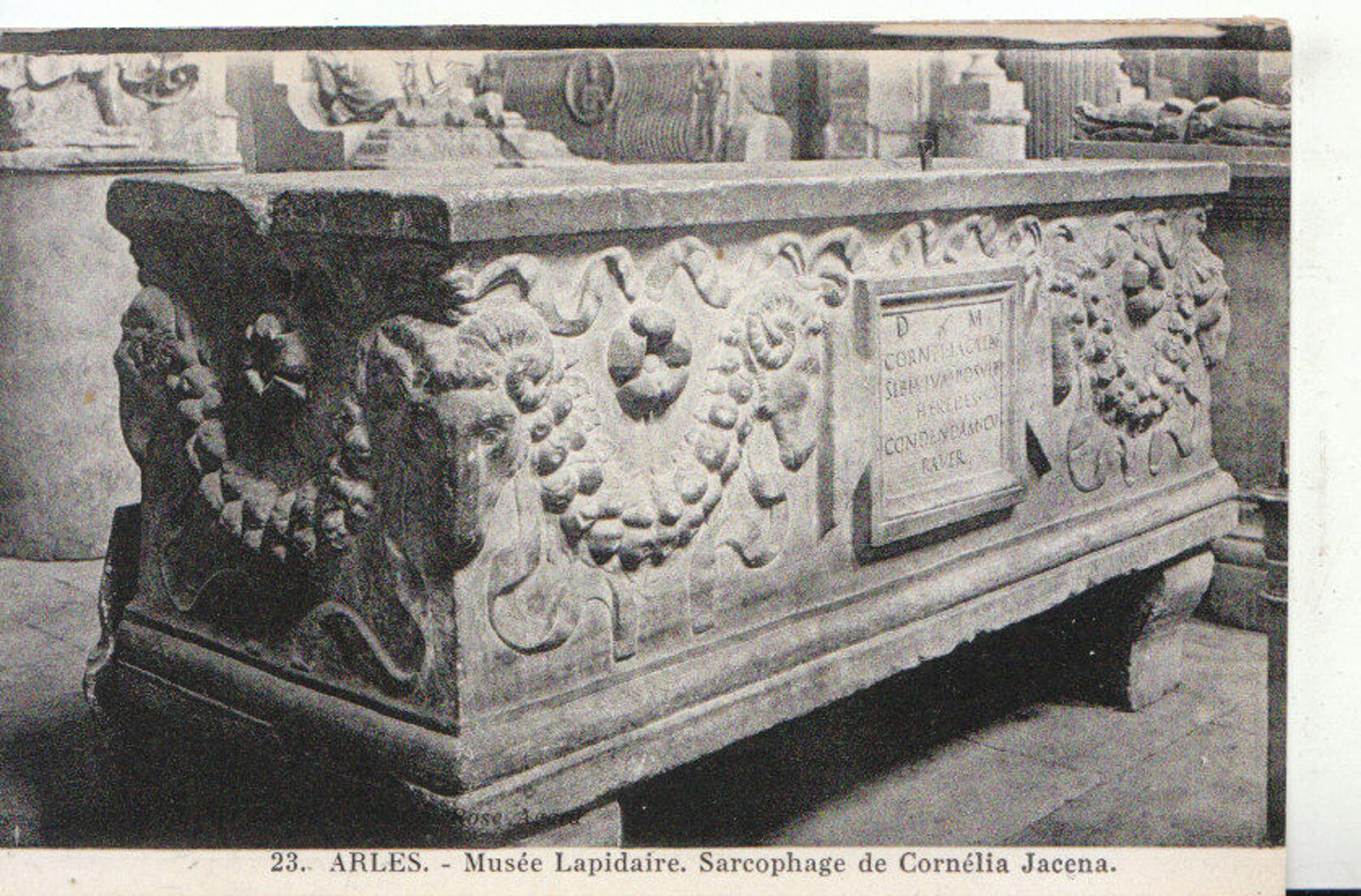 Postcard Description: France Postcard - Arles - Musee Lapidaire, Sarcophage De Cornelia Jacena. A used postcard.