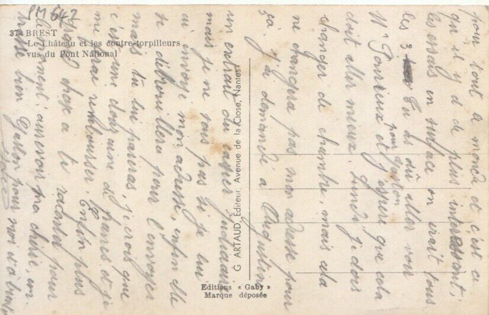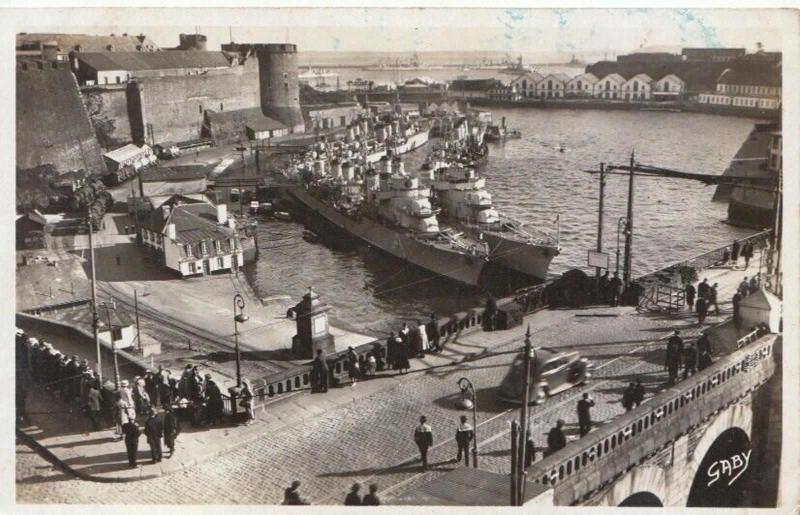 Postcard Description: France Postcard - Brest - Le Chateau Et Les Contre-Torpilleurs Vus Du Pont National