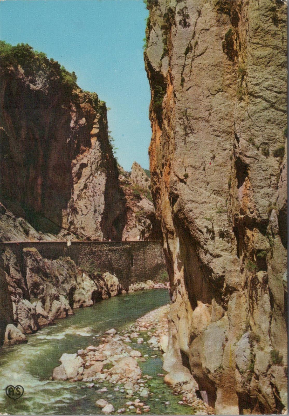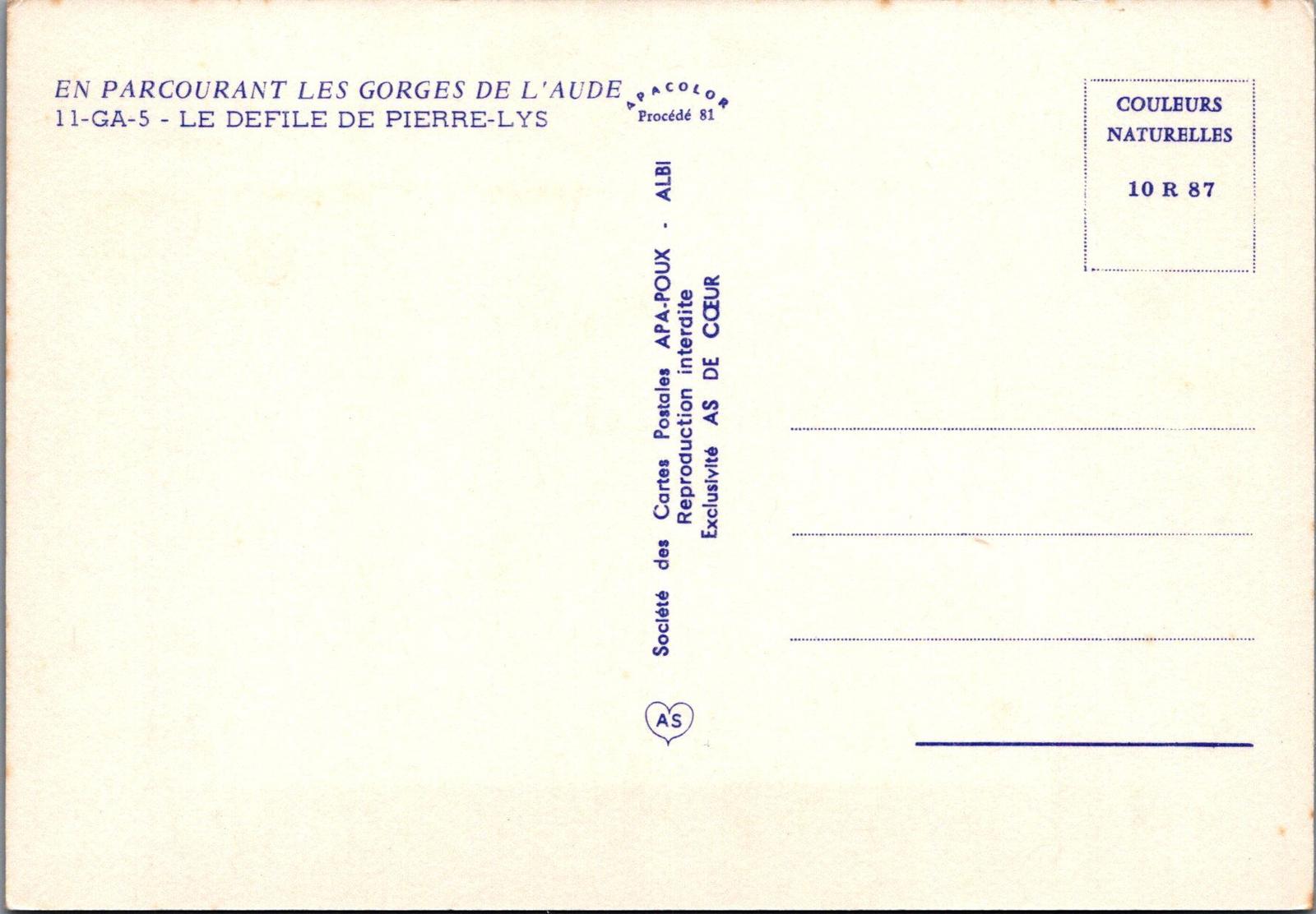 This is a France Postcard - Le Defile De Pierre-Lys, En Parcourant Les Gorges De L'Aude  RR15546