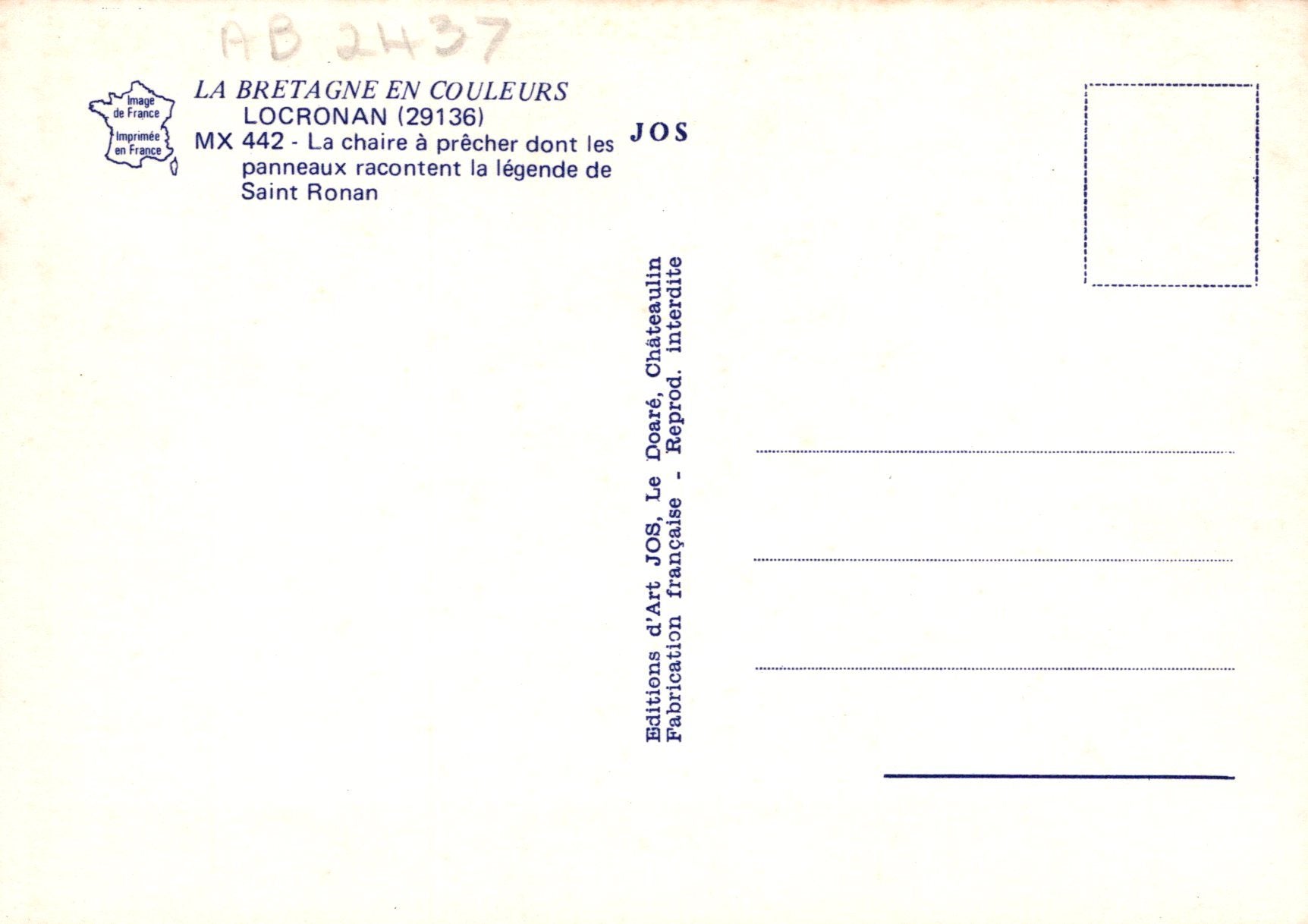 Mo's Ref: France Postcard - Locronan, La Chaire a Precher SW20692