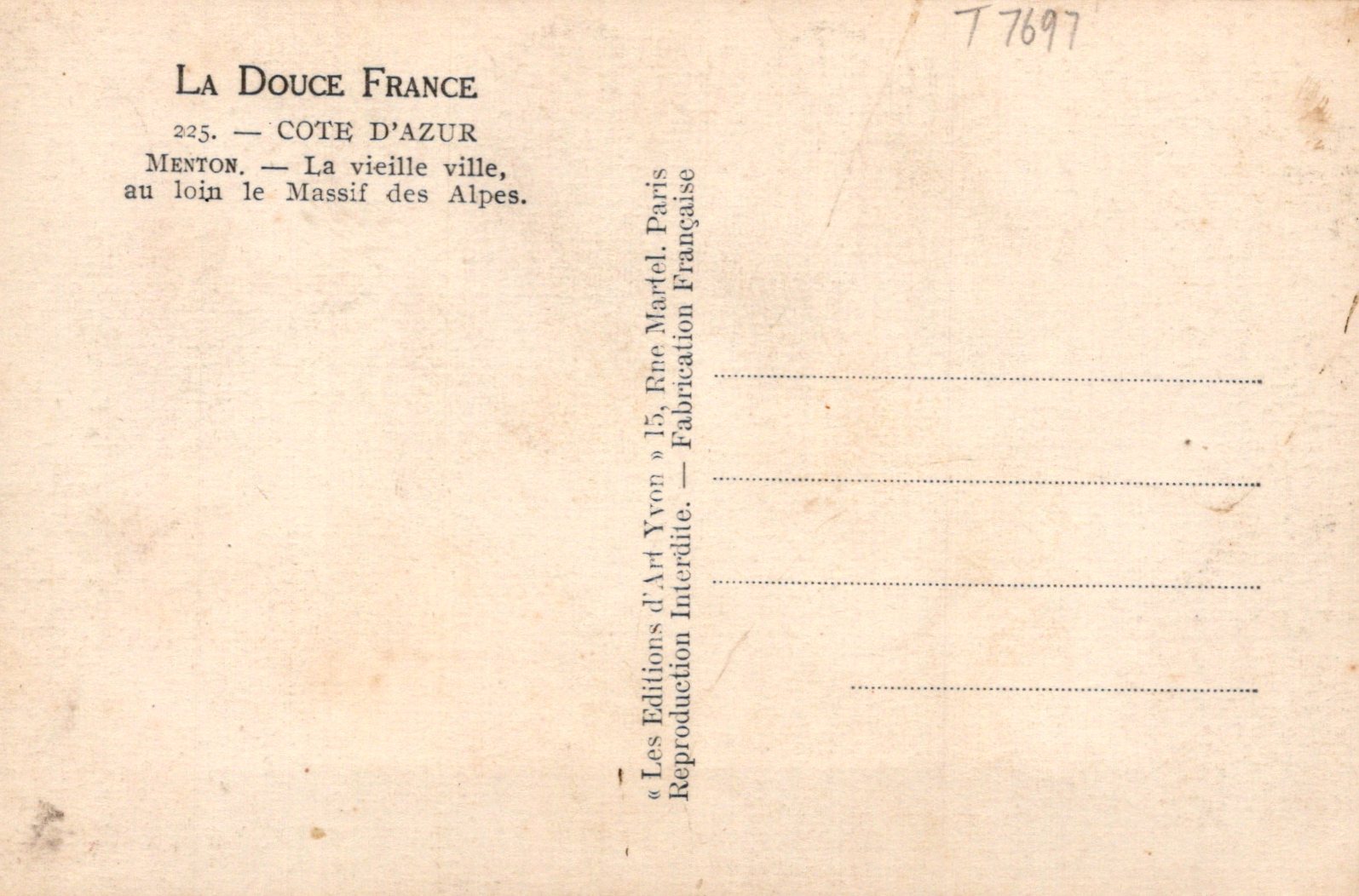 This is a France Postcard - Menton, La Vieille Ville SW20630