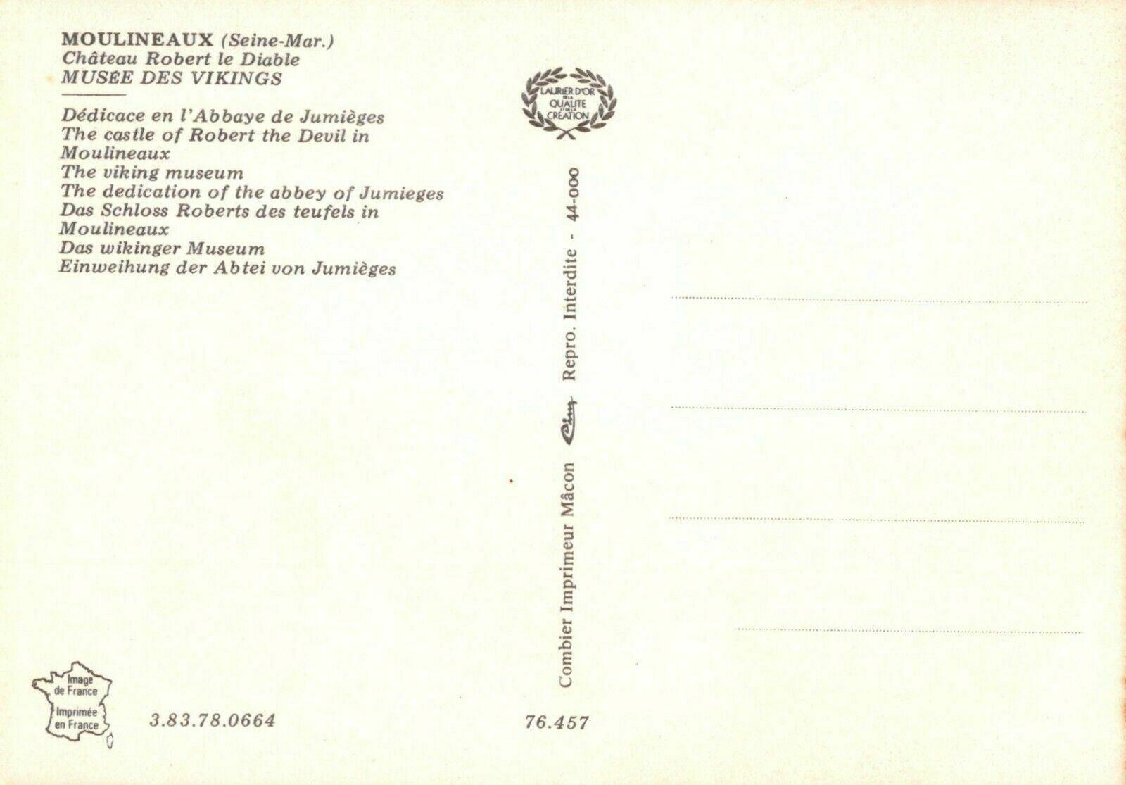 France Postcard - Moulineaux, Chateau Robert Le Diable, Musee Des Vikings RR8591