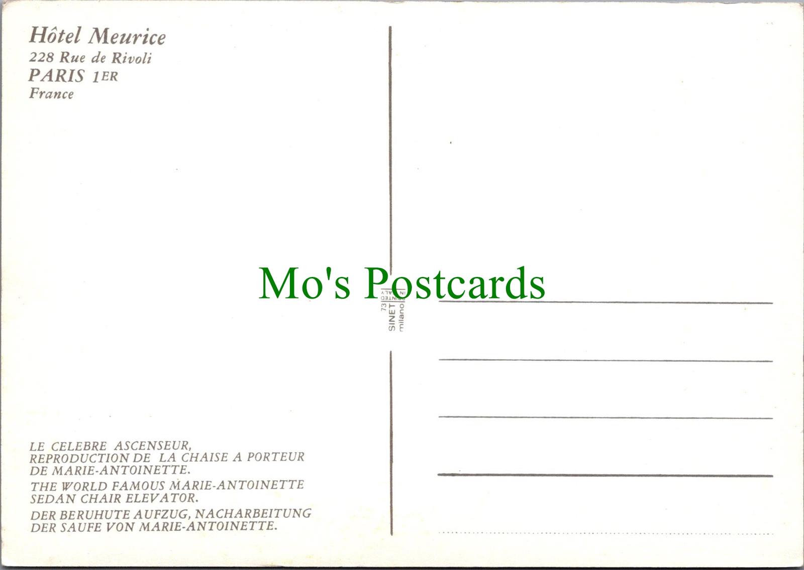 Mo's Ref:   France Postcard - Paris - Hotel Meurice, 228 Rue De Rivoli RRR1319