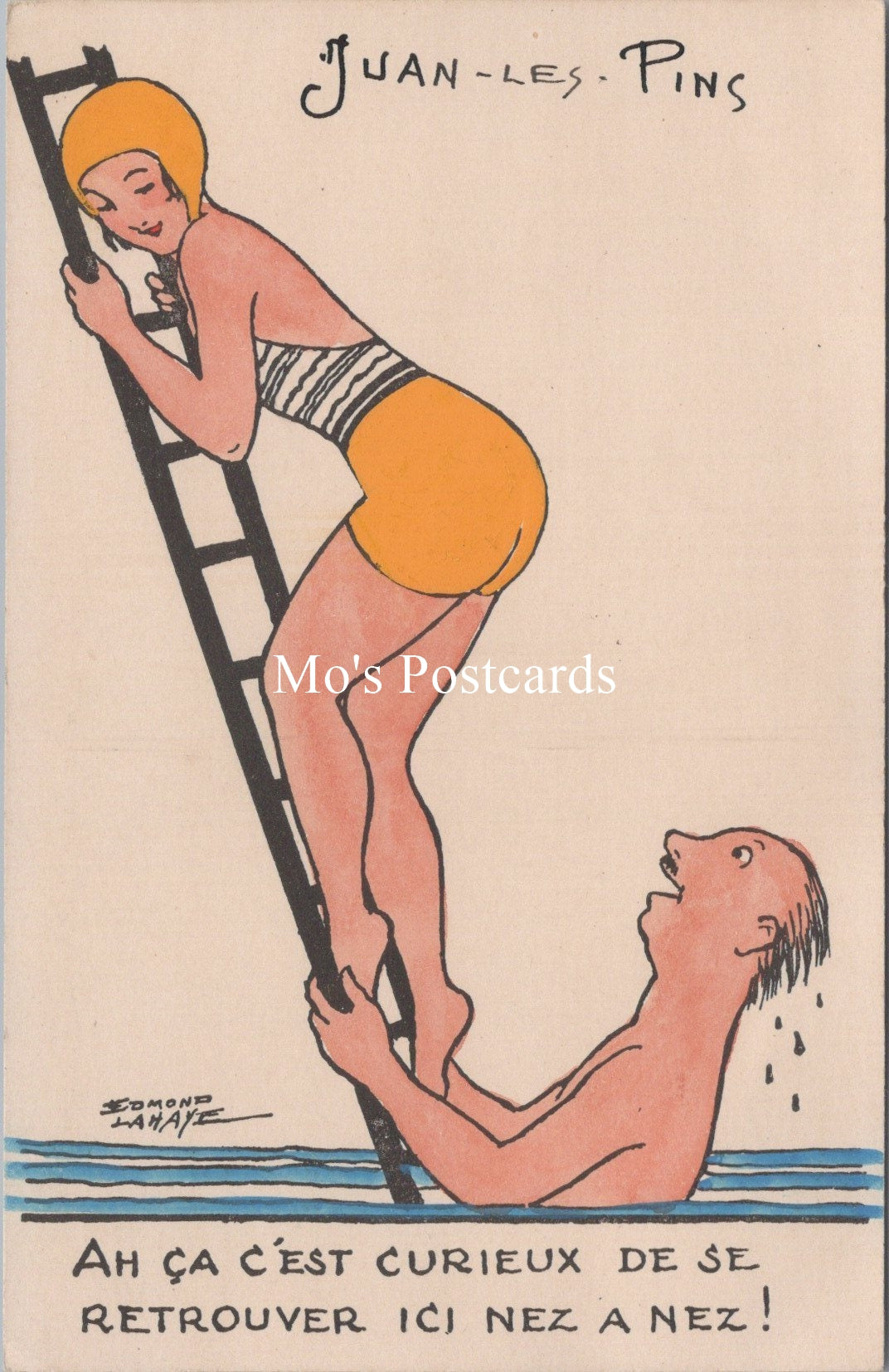 These are four quite rare French Art Postcards - Juan Les Pins Beach Scenes. Artist, Illustrator Edmond Lahaye - SW15881