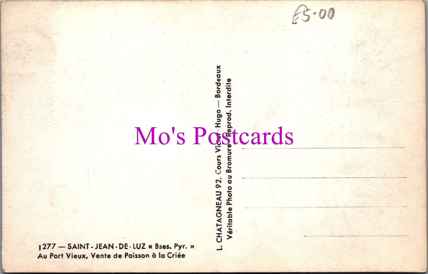 The 'Mo's Postcards' watermark does not appear on the actual postcard'.