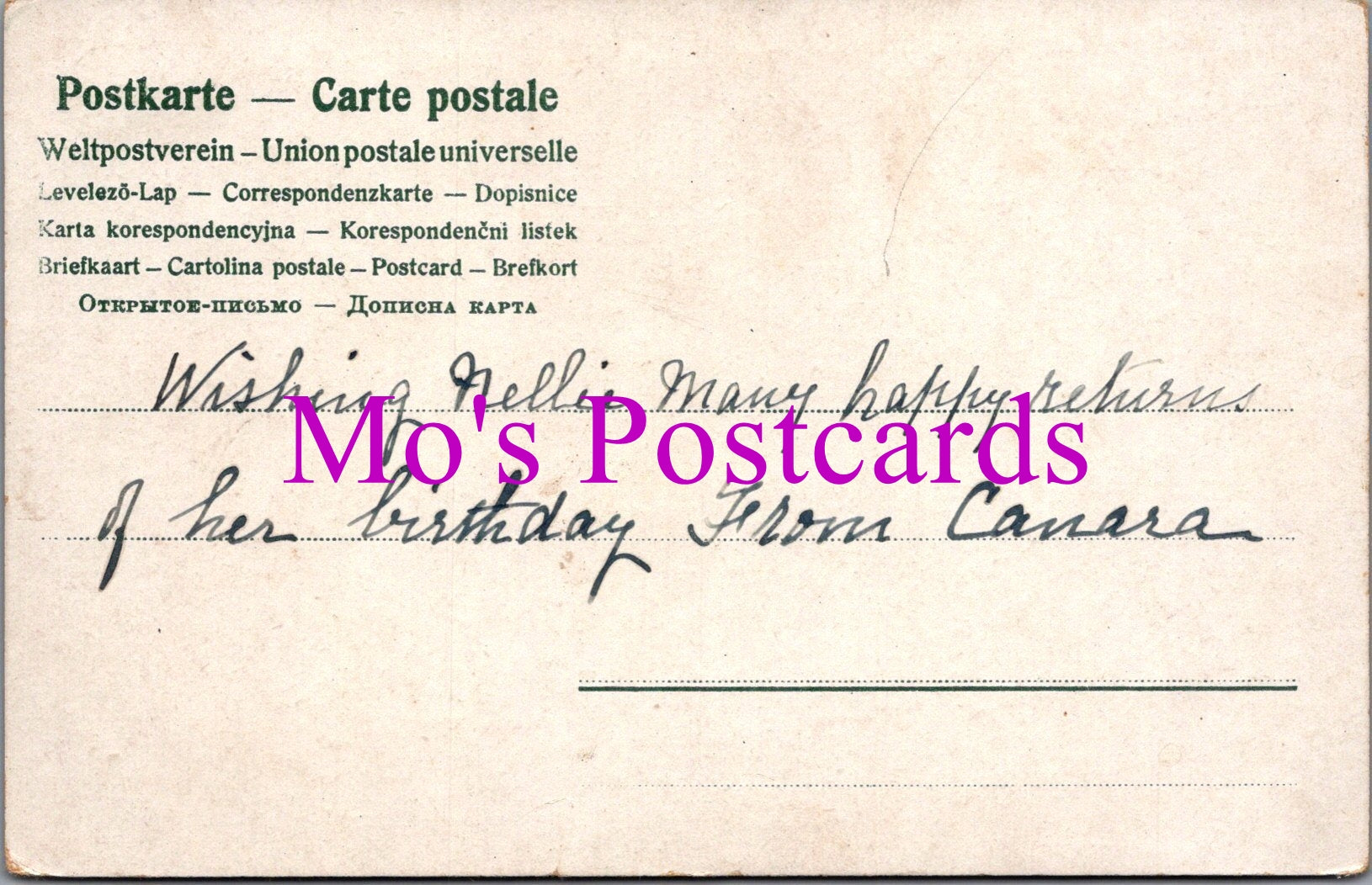 The 'Mo's Postcards' watermark does not appear on the actual postcard'.
