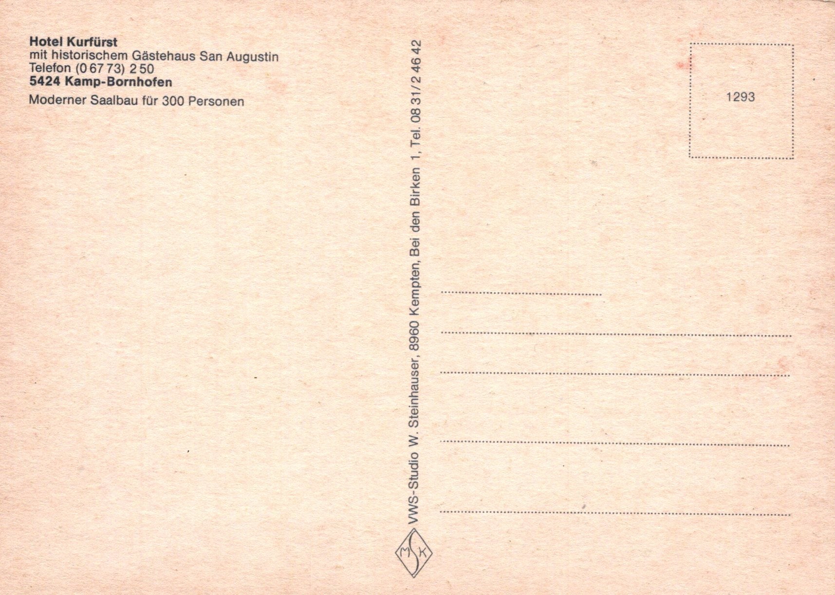 Mo's Ref: Germany Postcard - Hotel Kurfurst, Kamp-Bornhofen SW19994