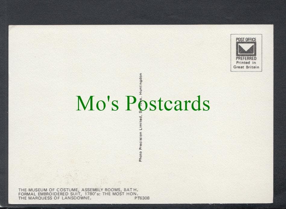 Postcard showing a Formal Embroidered Suit, Museum of Costume, Bath.