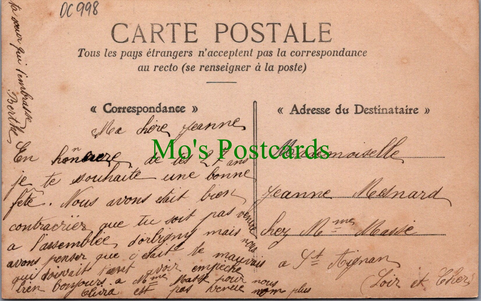 The 'Mo's Postcards' watermark does not appear on the actual postcard'.