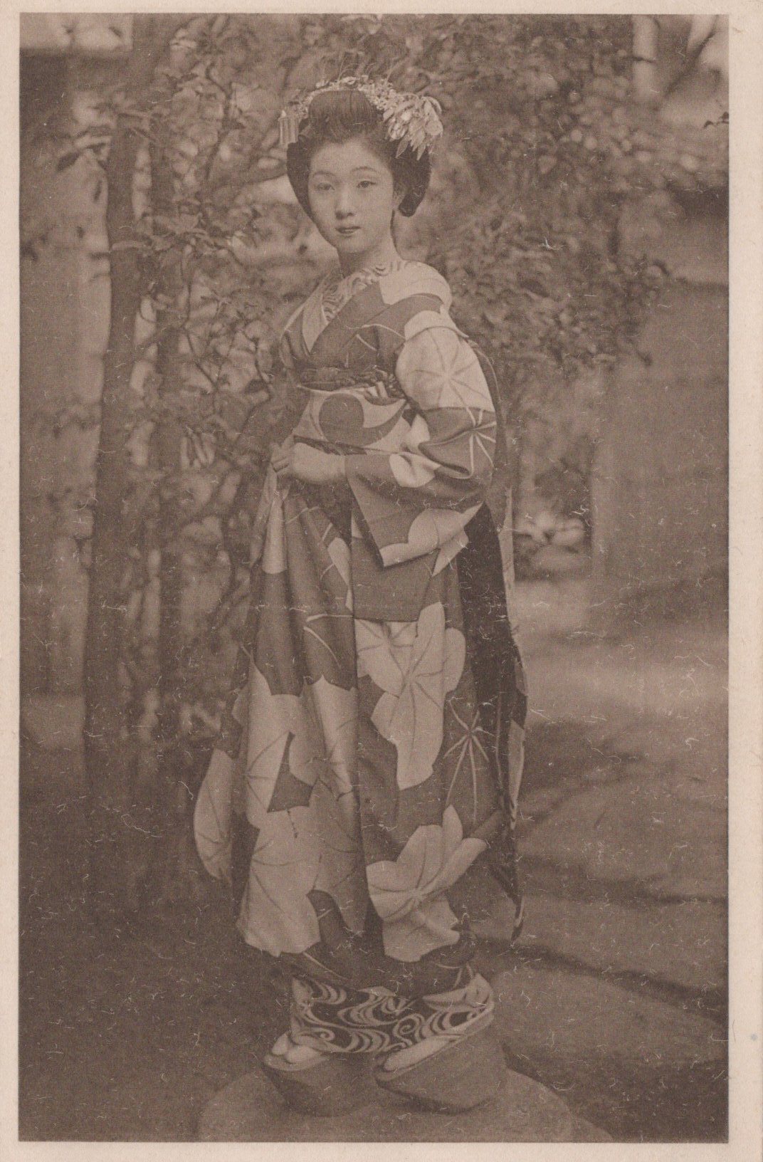 This is a Japanese Fashion Postcard - Young Woman Dressed in a traditional Japanese Kimono VT186