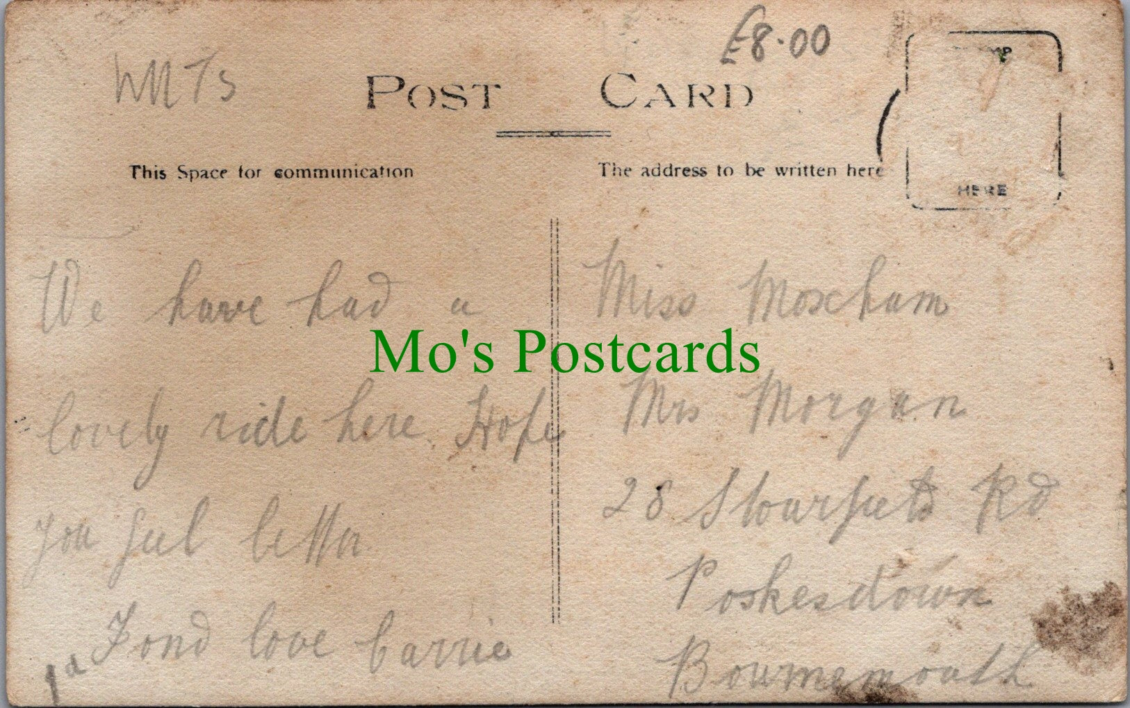 All of our beautiful postcards are posted to you inside a plastic sleeve and a board backed envelope which will be marked 'Please do not bend'. The 'Mo's Postcards' watermark does not appear on the actual postcard'.