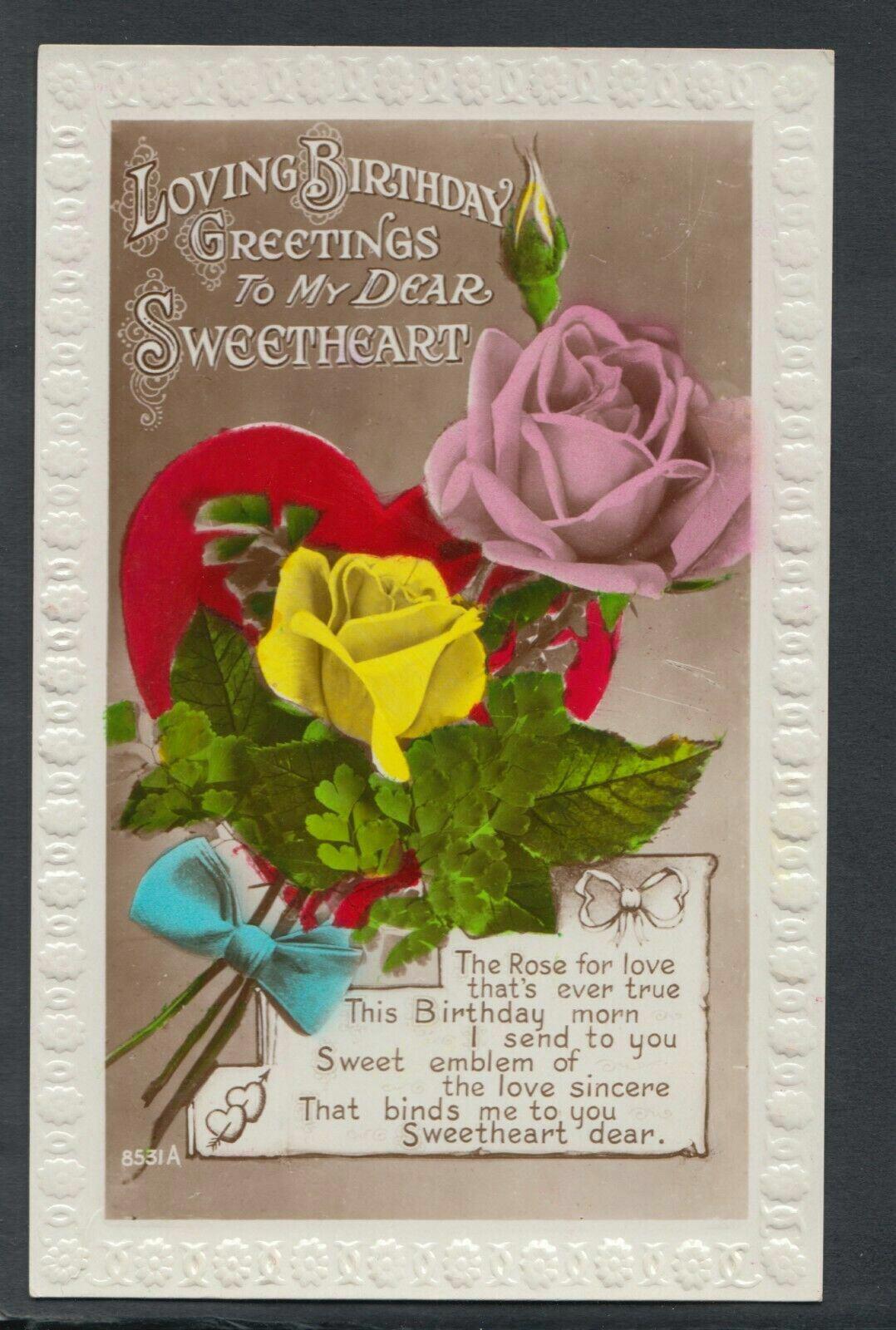 Postcard Description: Greetings Postcard - Loving Birthday Greetings To My Dear Sweetheart
