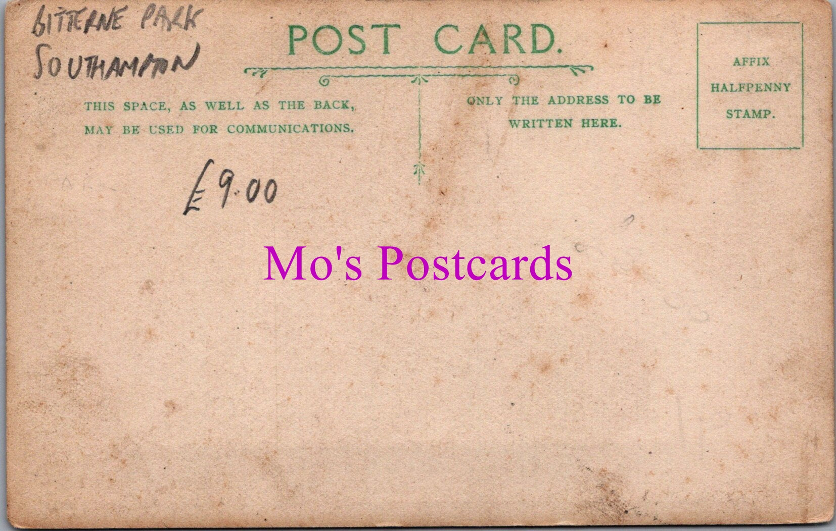 The 'Mo's Postcards' watermark does not appear on the actual postcard'.