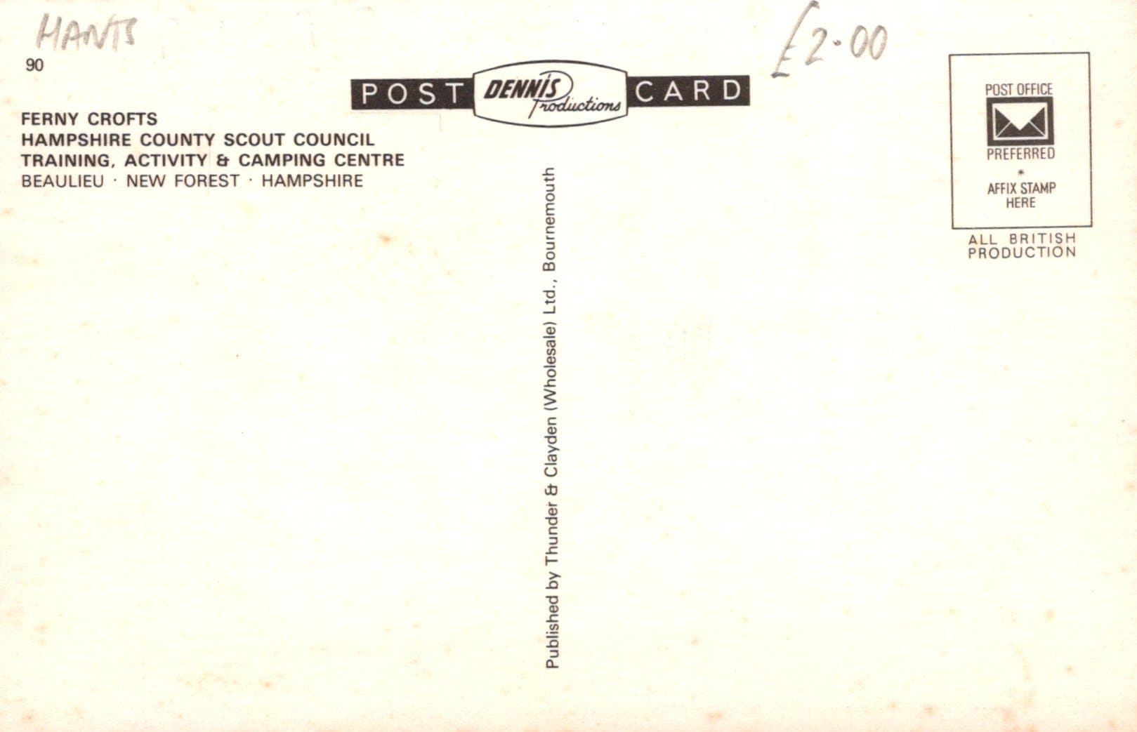 Hampshire Postcard - Ferny Crofts, Scout Council Training, Activity & Camping Centre, Beaulieu