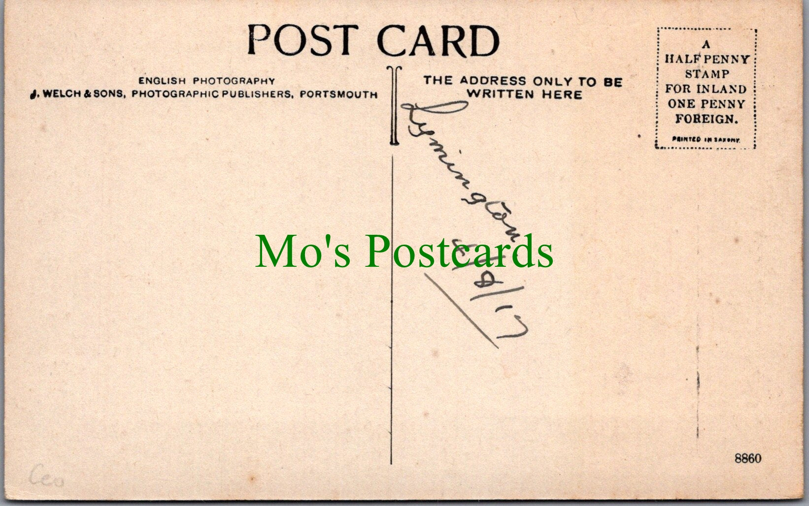The 'Mo's Postcards' watermark does not appear on the actual postcard'.
