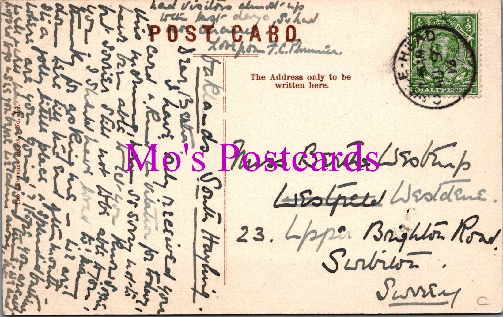 The 'Mo's Postcards' watermark does not appear on the actual postcard'.