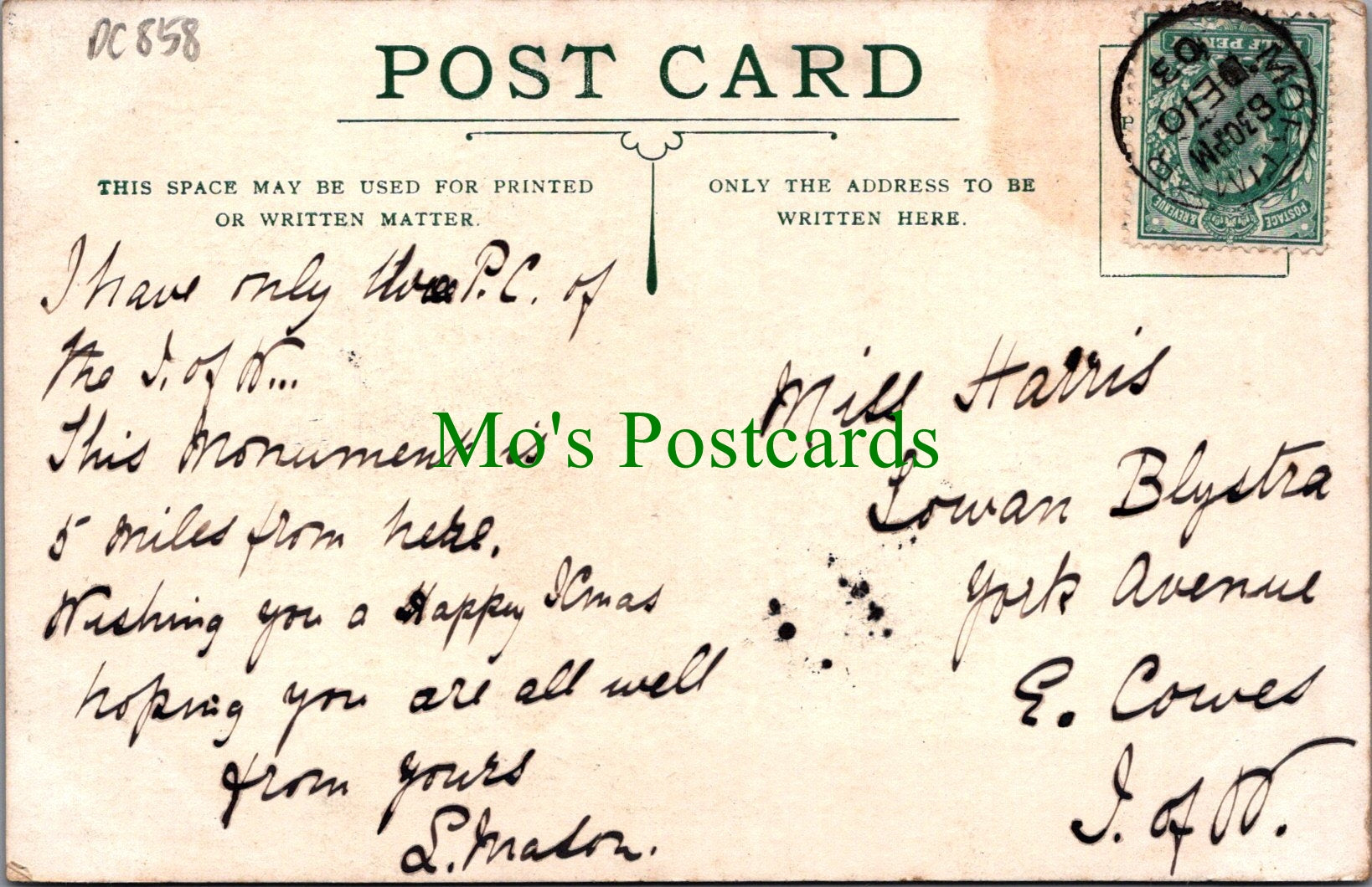 The 'Mo's Postcards' watermark does not appear on the actual postcard'.