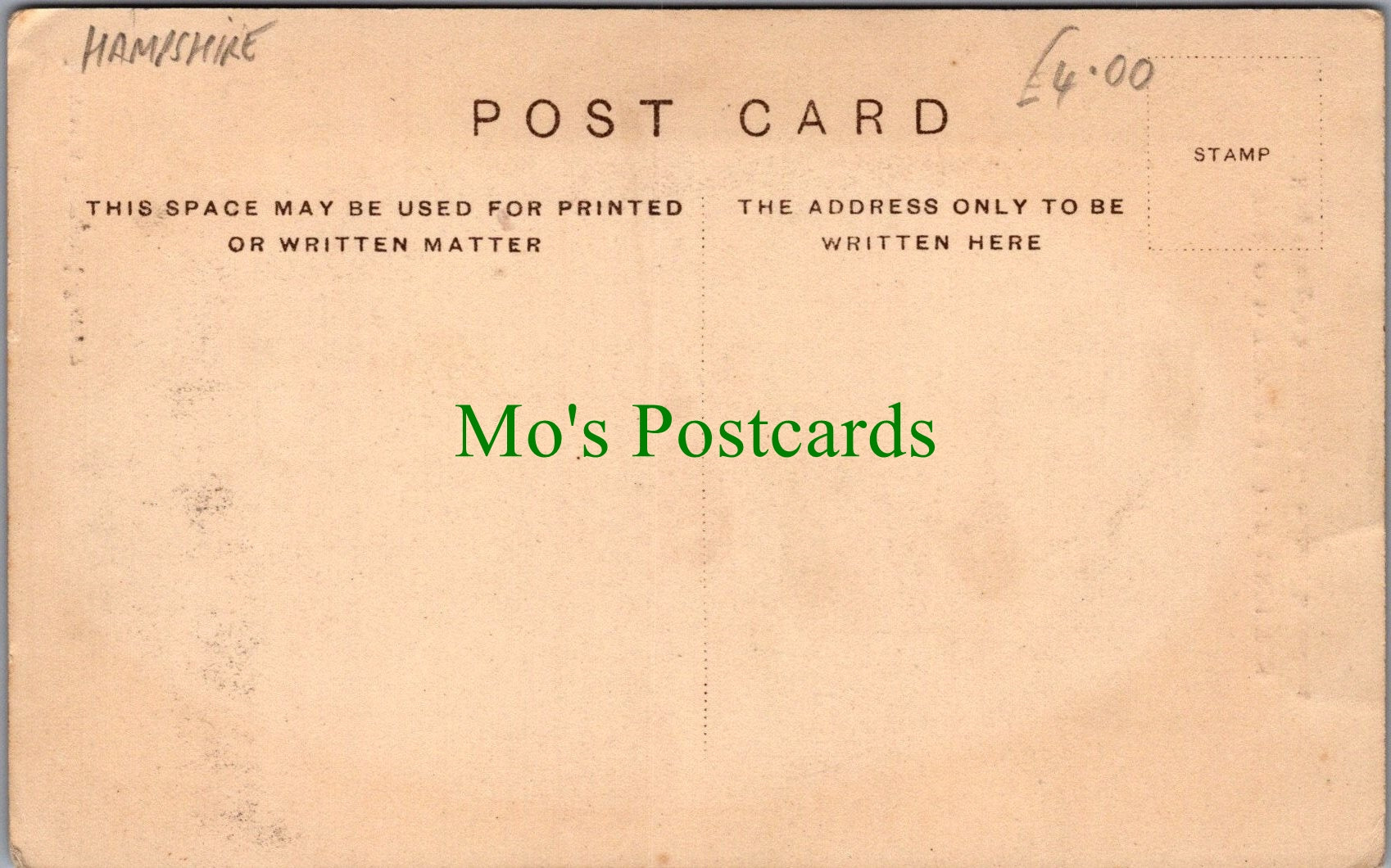 All of our postcards are posted to you inside a plastic sleeve and a board backed envelope which will be marked 'Please do not bend'. The 'Mo's Postcards' watermark does not appear on the actual postcard'.