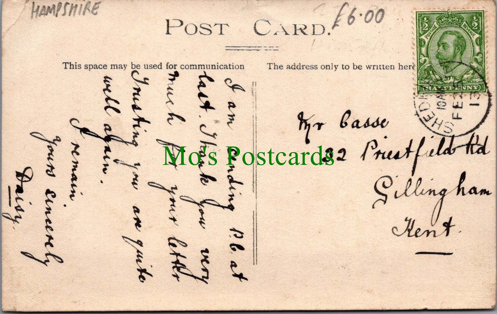 All of our postcards are posted to you inside a plastic sleeve and a board backed envelope which will be marked 'Please do not bend'. The 'Mo's Postcards' watermark does not appear on the actual postcard'.