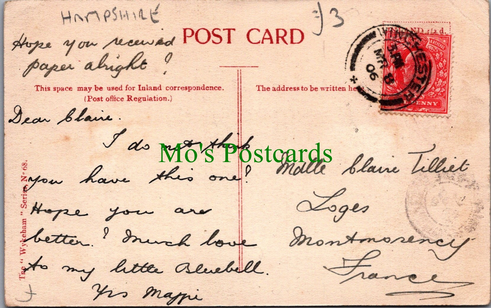 The Dinner Bell, St Cross, Winchester, Hampshire. This is a fantastic standard sized postcard which would be a great addition to your postcard collection. From the "Wykeham" series No 68. Posted in 1906.