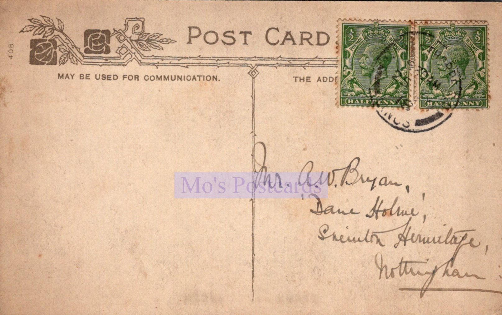 The 'Mo's Postcards' watermark does not appear on the actual postcard'.