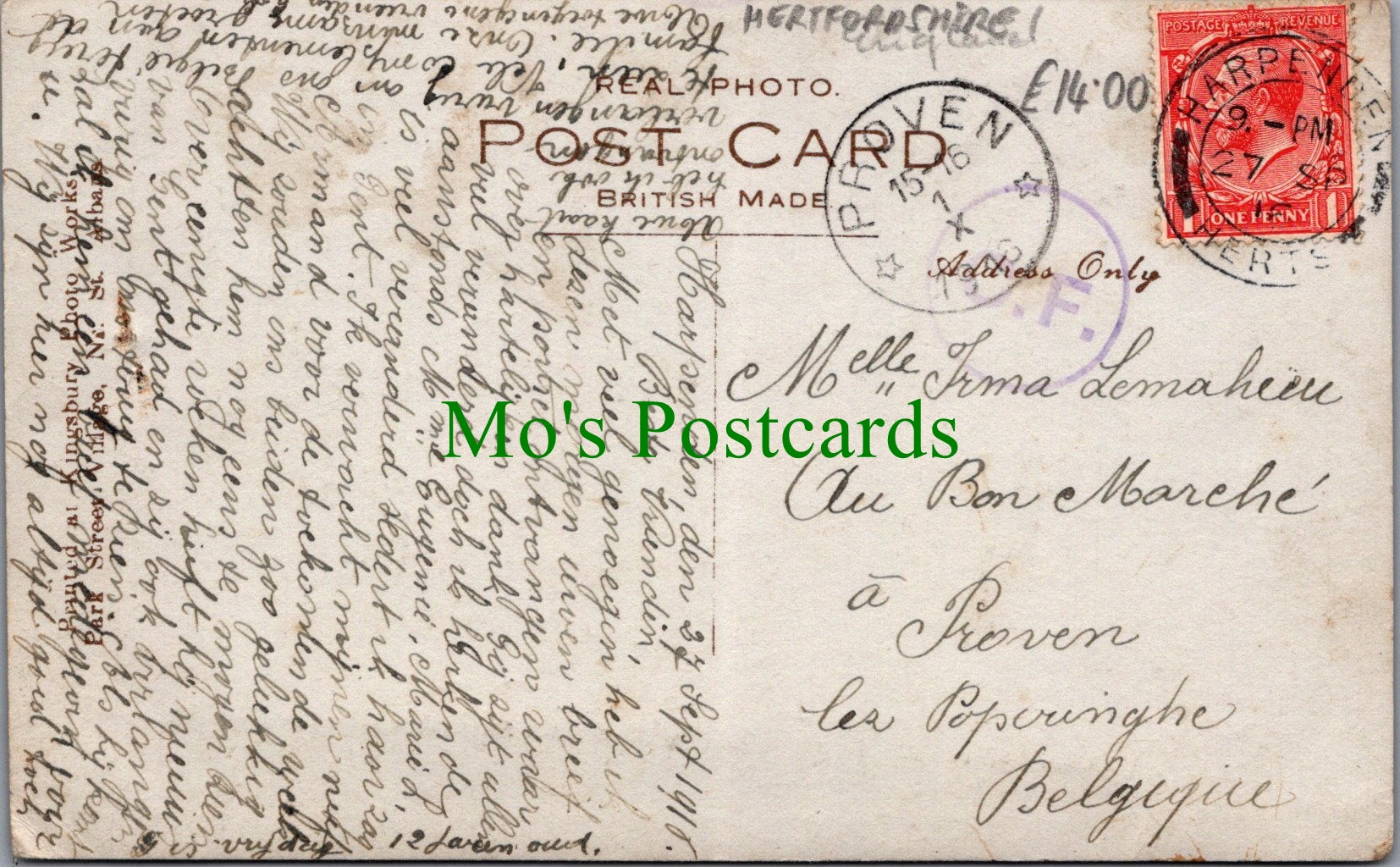All of our postcards are posted to you inside a plastic sleeve and a board backed envelope which will be marked 'Please do not bend'. The 'Mo's Postcards' watermark does not appear on the actual postcard'.