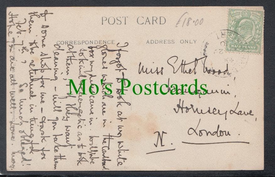 Standard size postcard. Published by A.Clutterbuck?. Relatively light angled crease from the bottom edge and slight surface wear.
