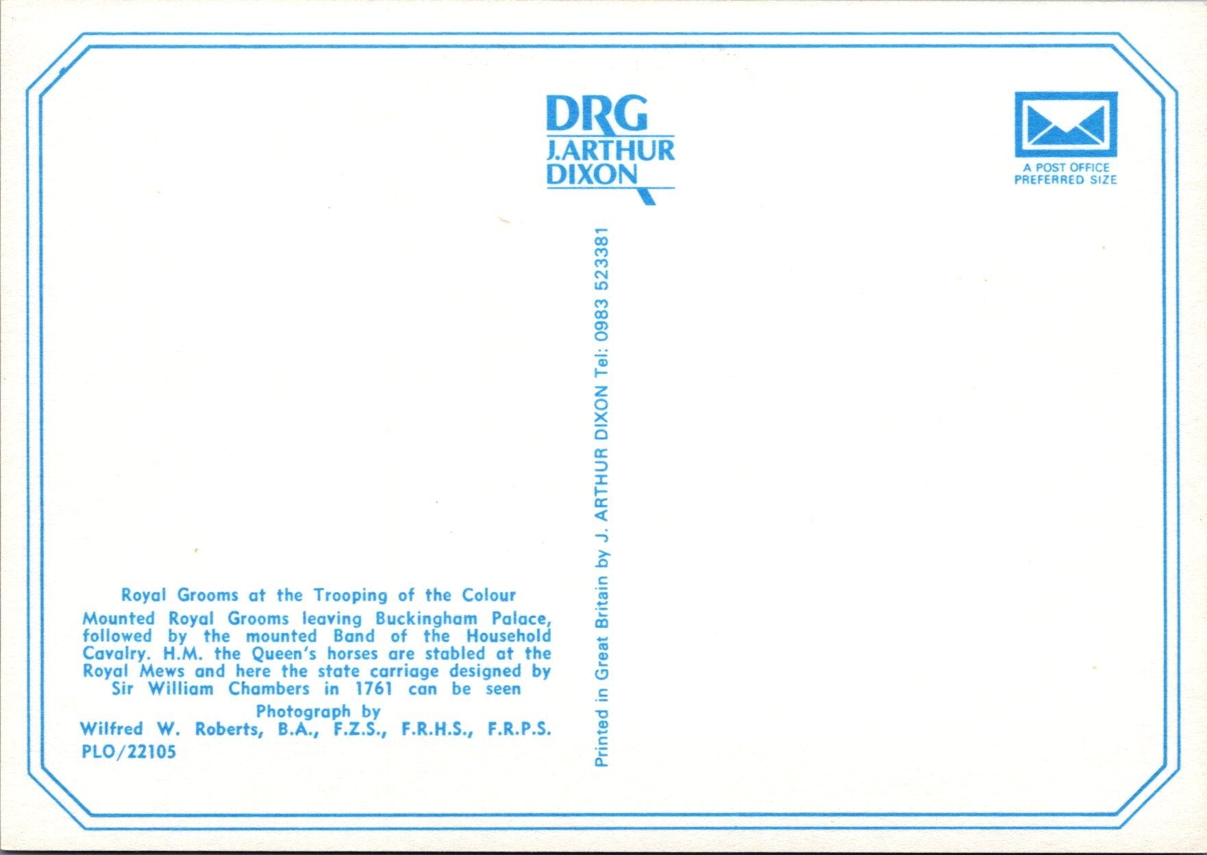 This is an Animals Postcard - Royal Grooms at Trooping The Colour SW17324
