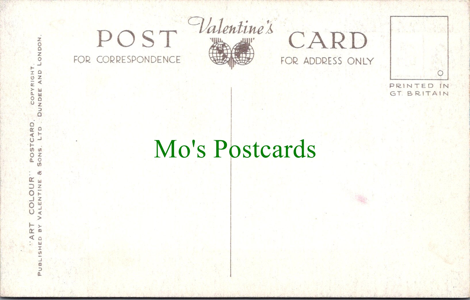 All of our postcards are posted to you inside a plastic sleeve and a board backed envelope which will be marked 'Please do not bend'. The 'Mo's Postcards' watermark does not appear on the actual postcard'.
