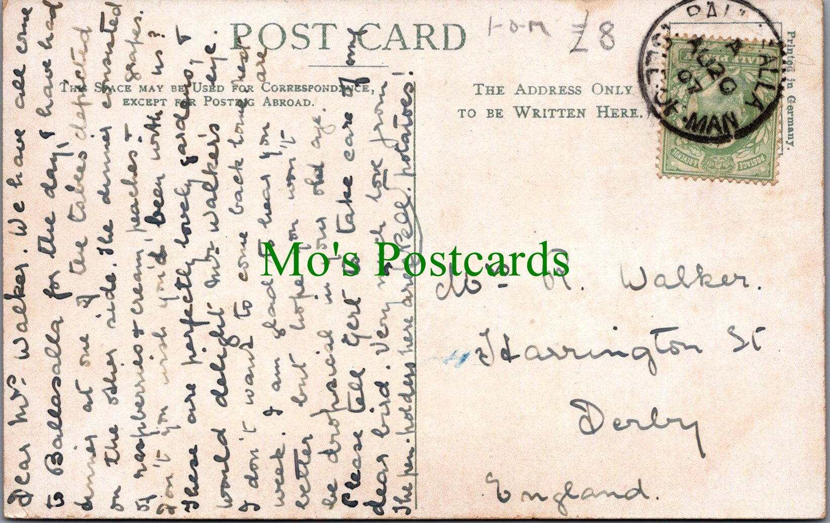 All of our postcards are posted to you inside a plastic sleeve and a board backed envelope which will be marked 'Please do not bend'. The 'Mo's Postcards' watermark does not appear on the actual postcard'.