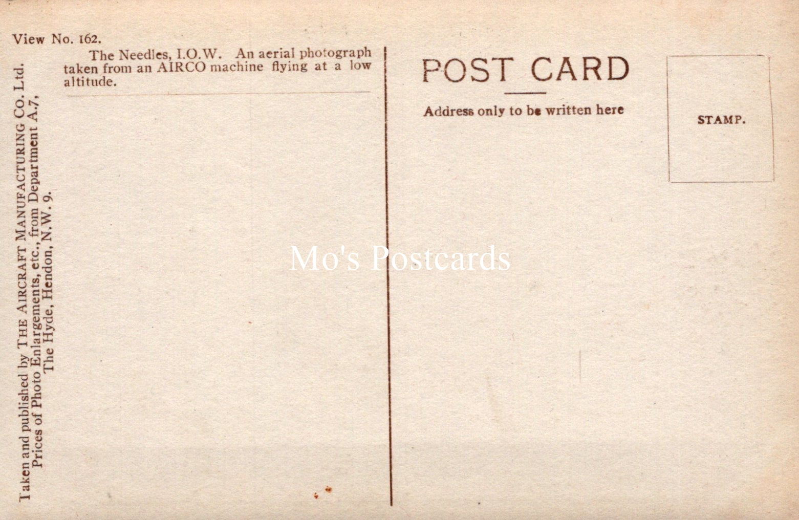 The 'Mo's Postcards' watermark does not appear on the actual postcard'.