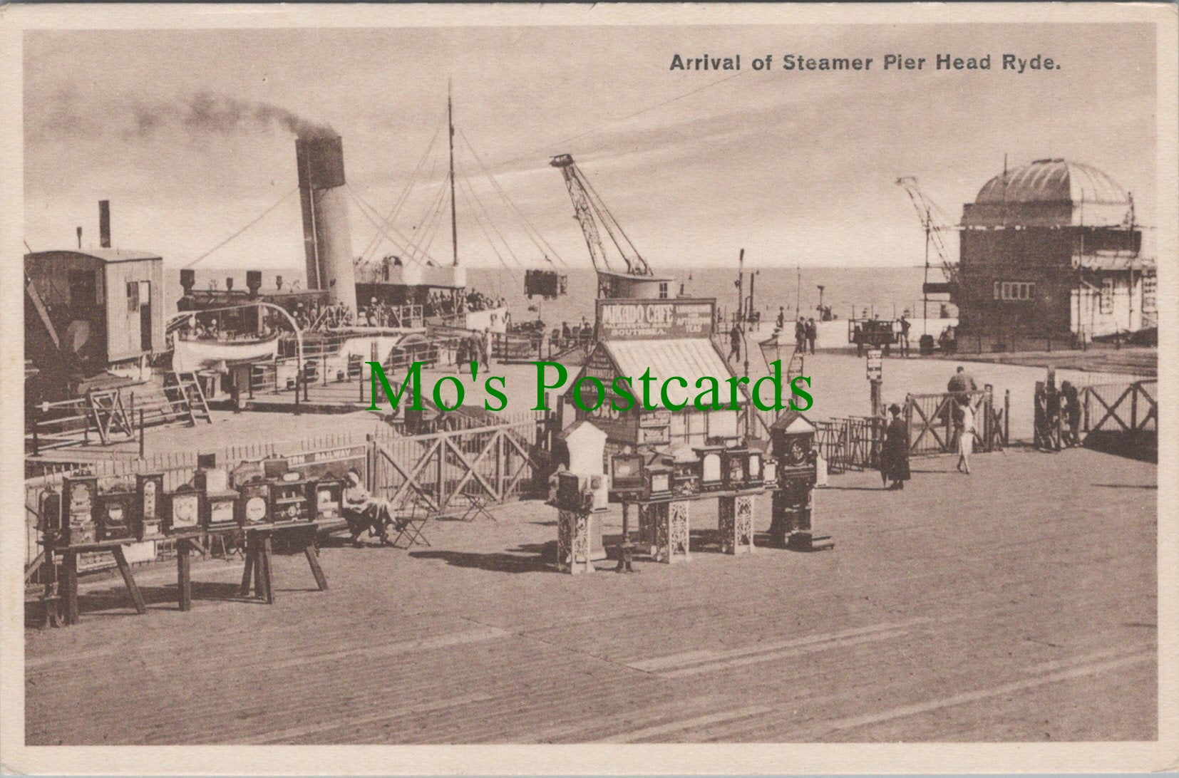 Mo's Ref:  Isle of Wight Postcard - Arrival of Steamer, Pier Head, Ryde Ref.SW9851