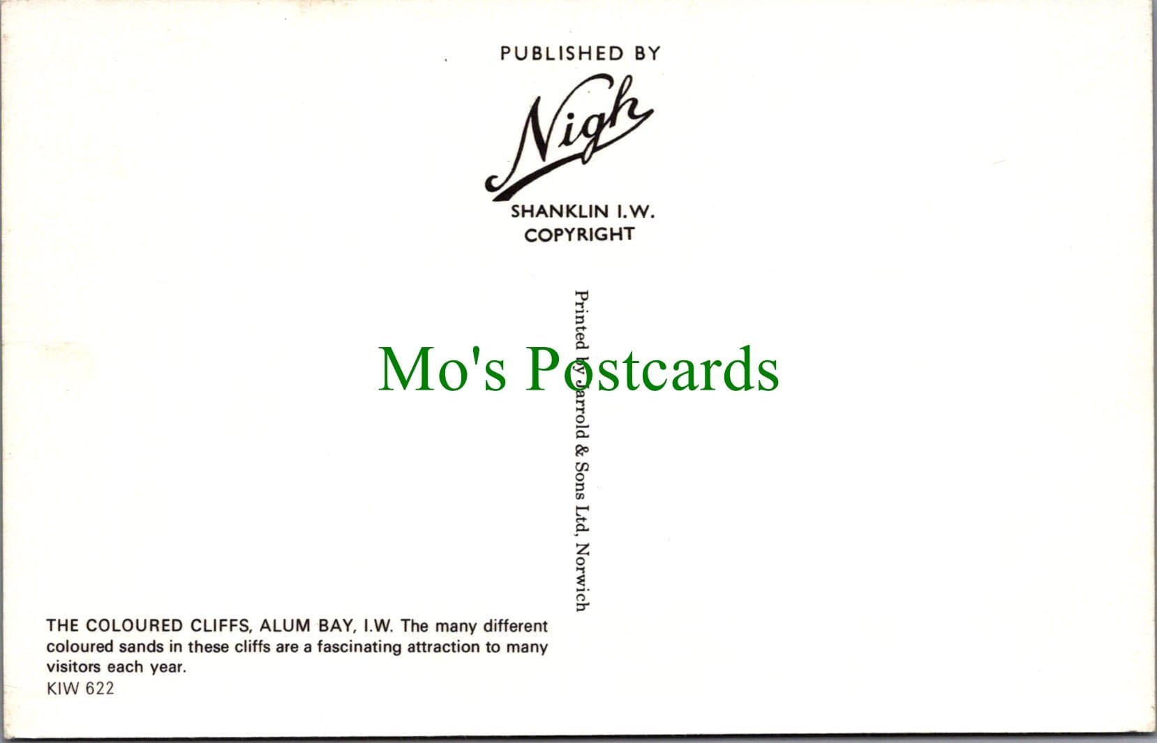 Mo's Postcards offers for sale a postcard of The Coloured Cliffs, Alum Bay.