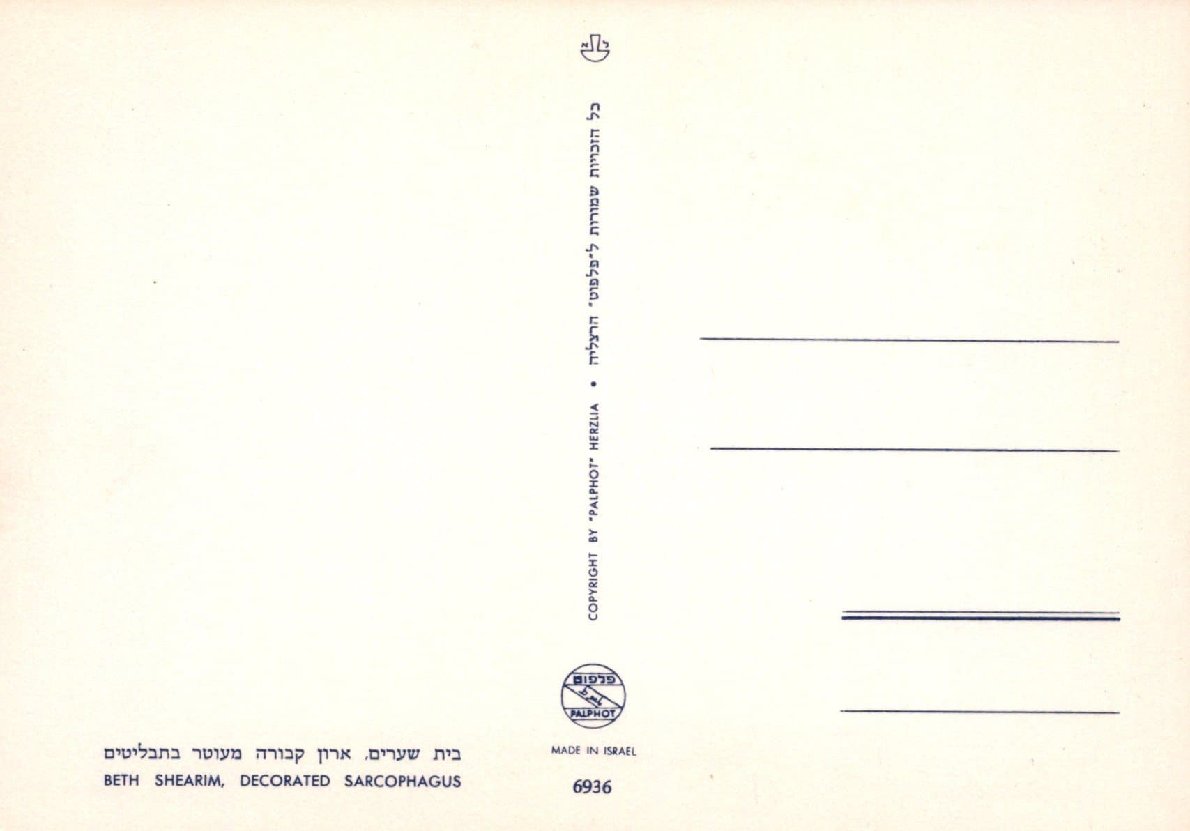 Israel Postcard - Beth Shearim - Decorated Sarcophagus