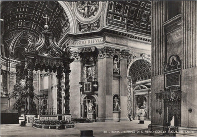 Italy Postcard -Roma / Rome -Interno Di S.Pietro Con La Statua Del Santo RRR1421