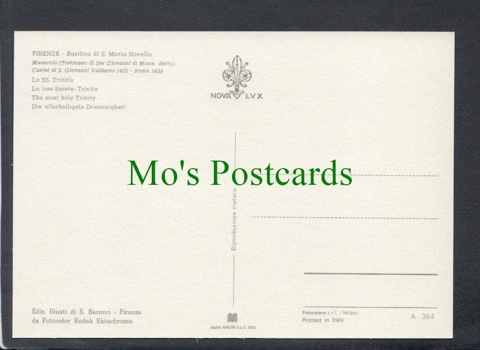 Mo's Postcards offers for sale a postcard of The Most Holy Trinity, Basilica Di S.Maria Novella, Firenze, Italy