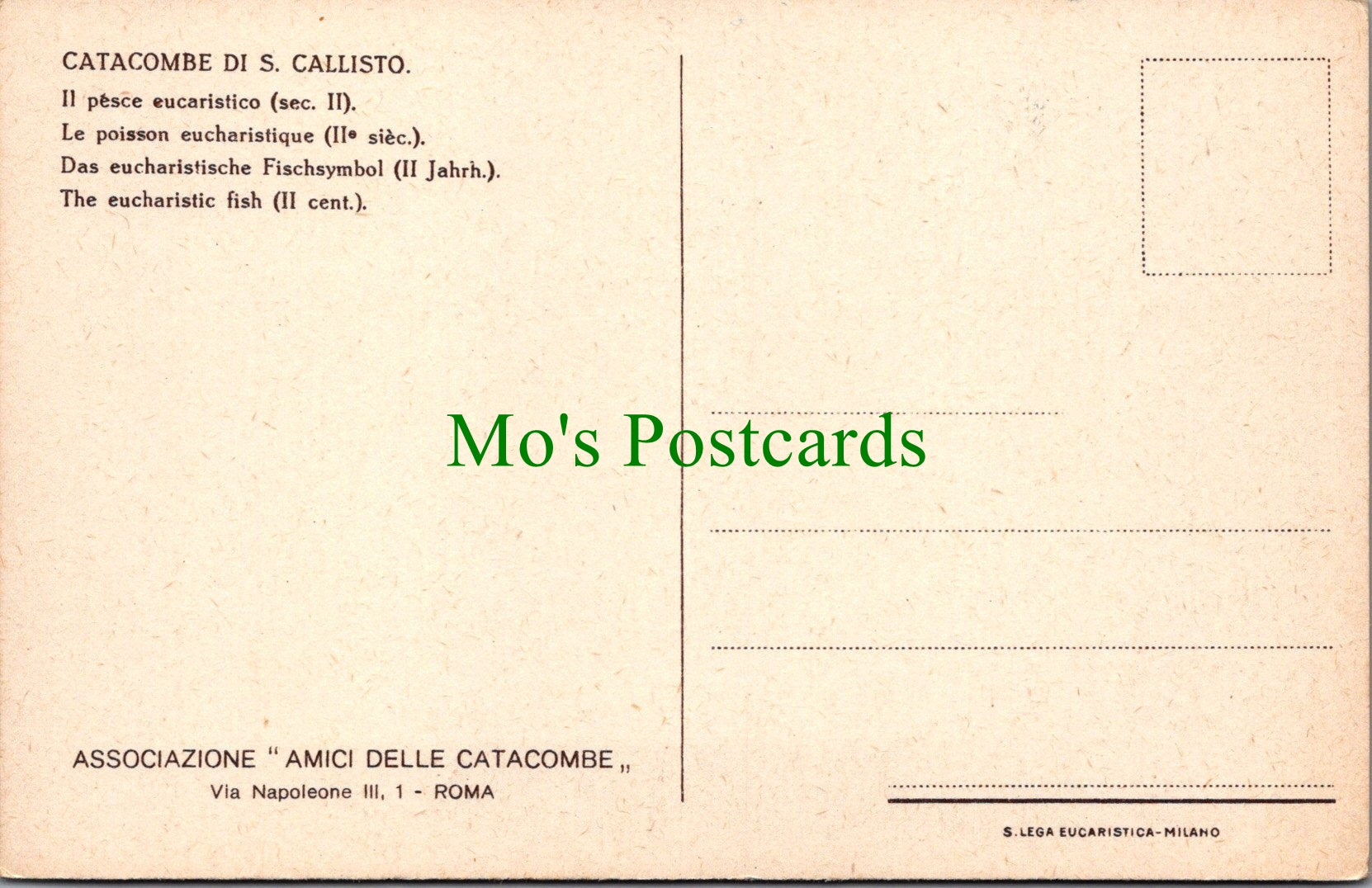 The Eucharistic Fish, Catacombe Di S.Callisto, Rome, Italy. This is a fantastic standard sized postcard which would be a great addition to your postcard collection.