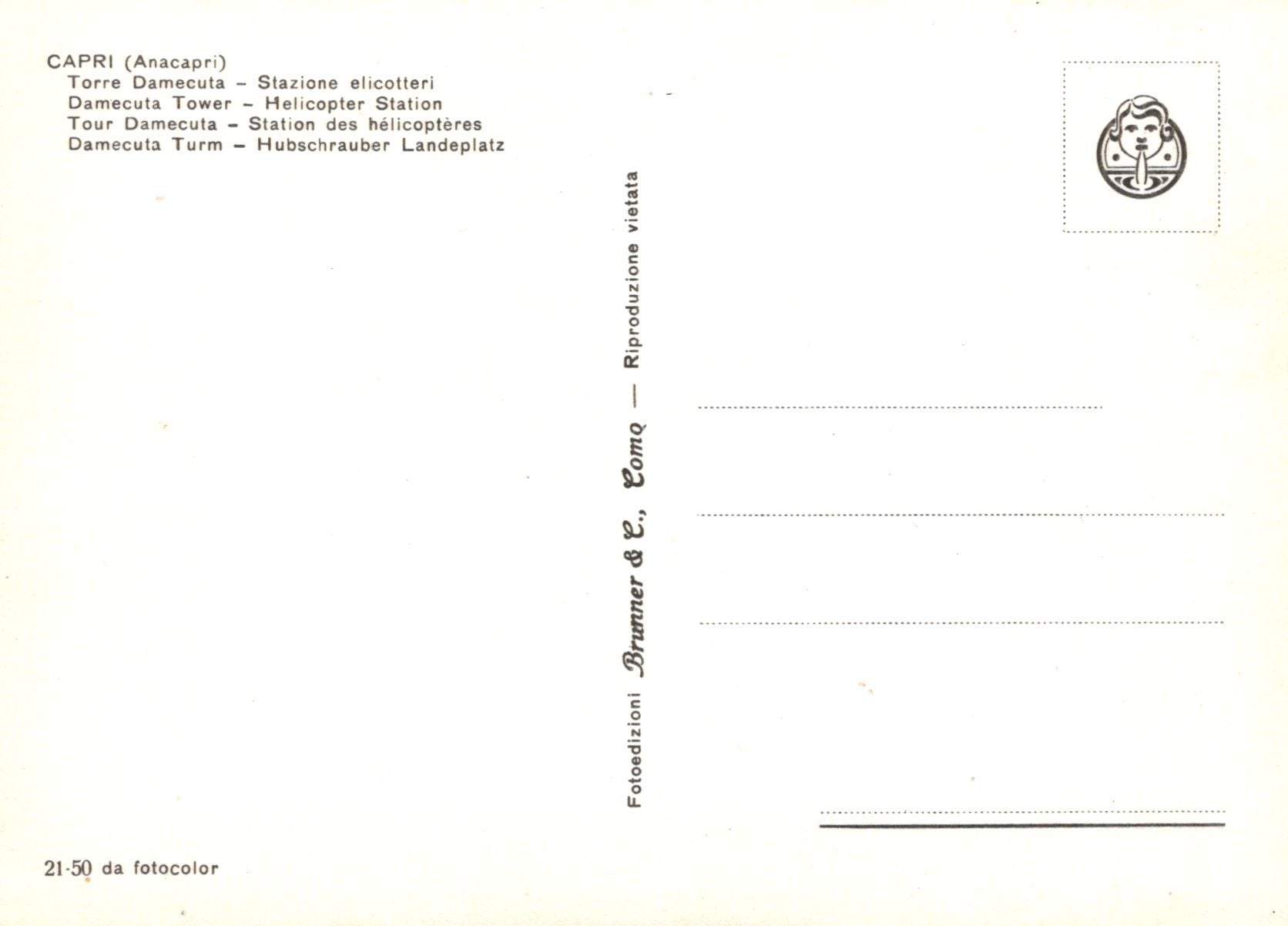 This is an Italy Postcard - Capri, Damecuta Tower, Helicopter Station VT331