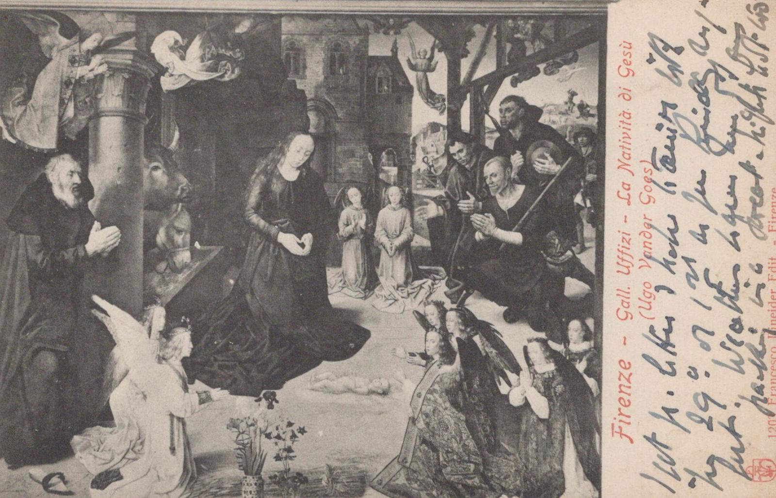 This is an Italy Postcard - Firenze, Florence, Gallery Uffizi, La Nativita Di Gesu XT43