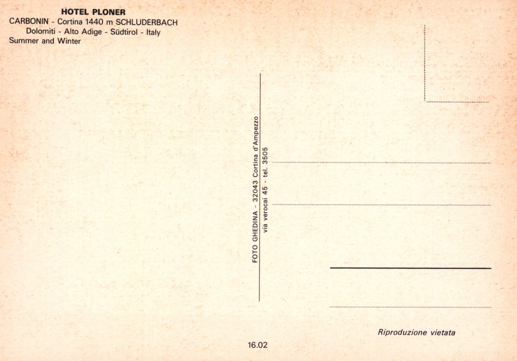 This is an Italy Postcard - Hotel Ploner, Carbonin, Schluderbach SW18956