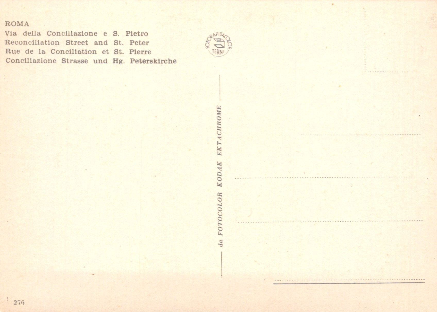 This is an Italy Postcard - Roma, Rome, Reconcillation Street and St Peter SW20008