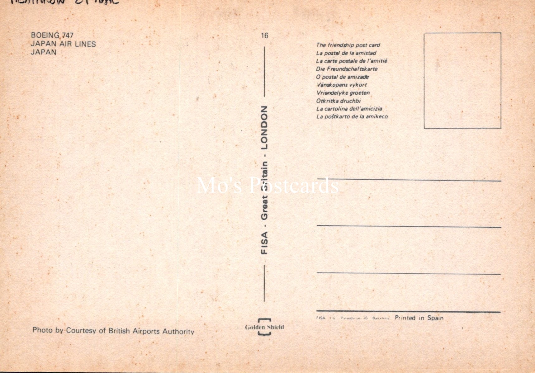 The 'Mo's Postcards' watermark does not appear on the actual postcard'.