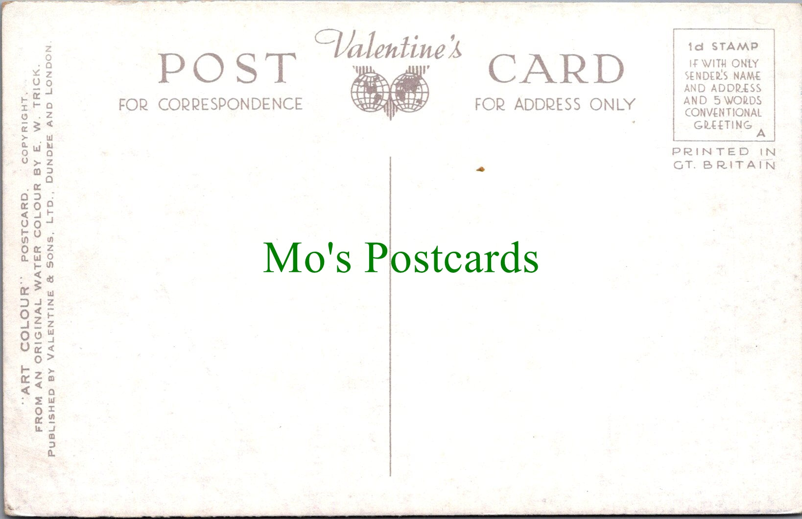 All of our beautiful postcards are posted to you inside a plastic sleeve and a board backed envelope which will be marked 'Please do not bend'. The 'Mo's Postcards' watermark does not appear on the actual postcard'.