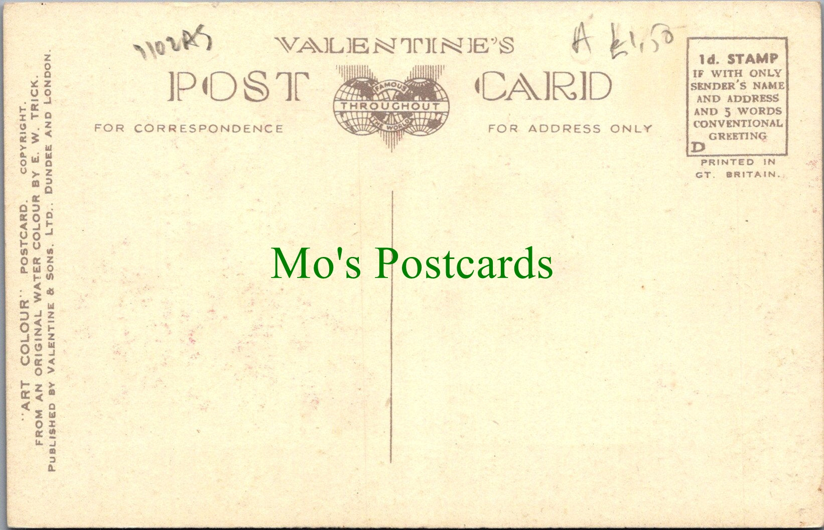 The Jetty, St Aubins, Jersey. This is a fantastic standard sized postcard which would be a great addition to your postcard collection. Published by Valentine & Sons. "Art Colour". Artist E.W.Trick.