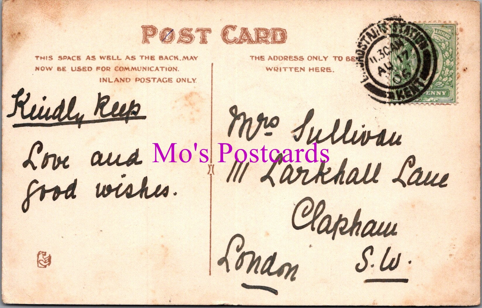 The 'Mo's Postcards' watermark does not appear on the actual postcard'.