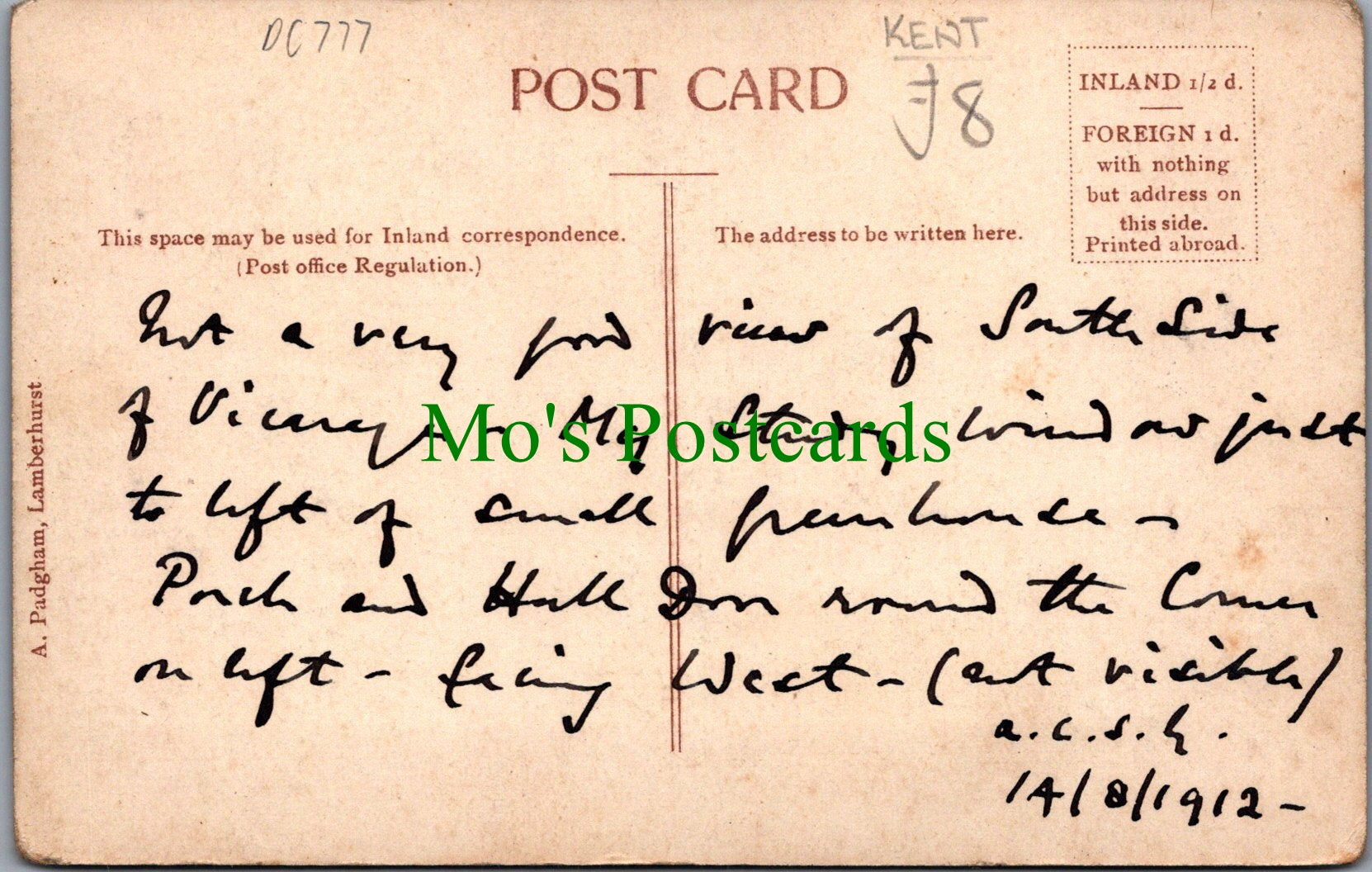 The 'Mo's Postcards' watermark does not appear on the actual postcard'.