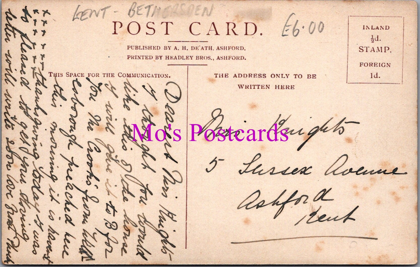 The 'Mo's Postcards' watermark does not appear on the actual postcard'.